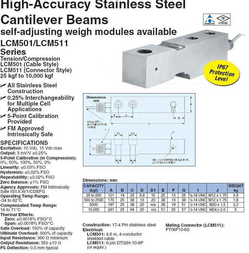 Omega LCM501 懸臂梁傳感器(load cells)