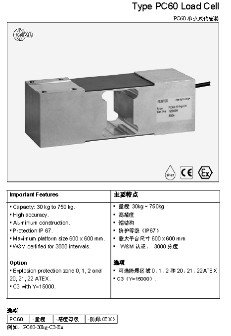 FLINTEC PC60 單點(diǎn)式稱(chēng)重傳感器(load cells)