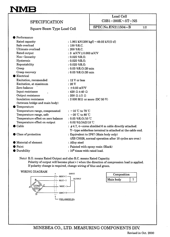 | 產(chǎn)品名稱(chēng):C3B1 NMB稱(chēng)重傳感器(load cells) |