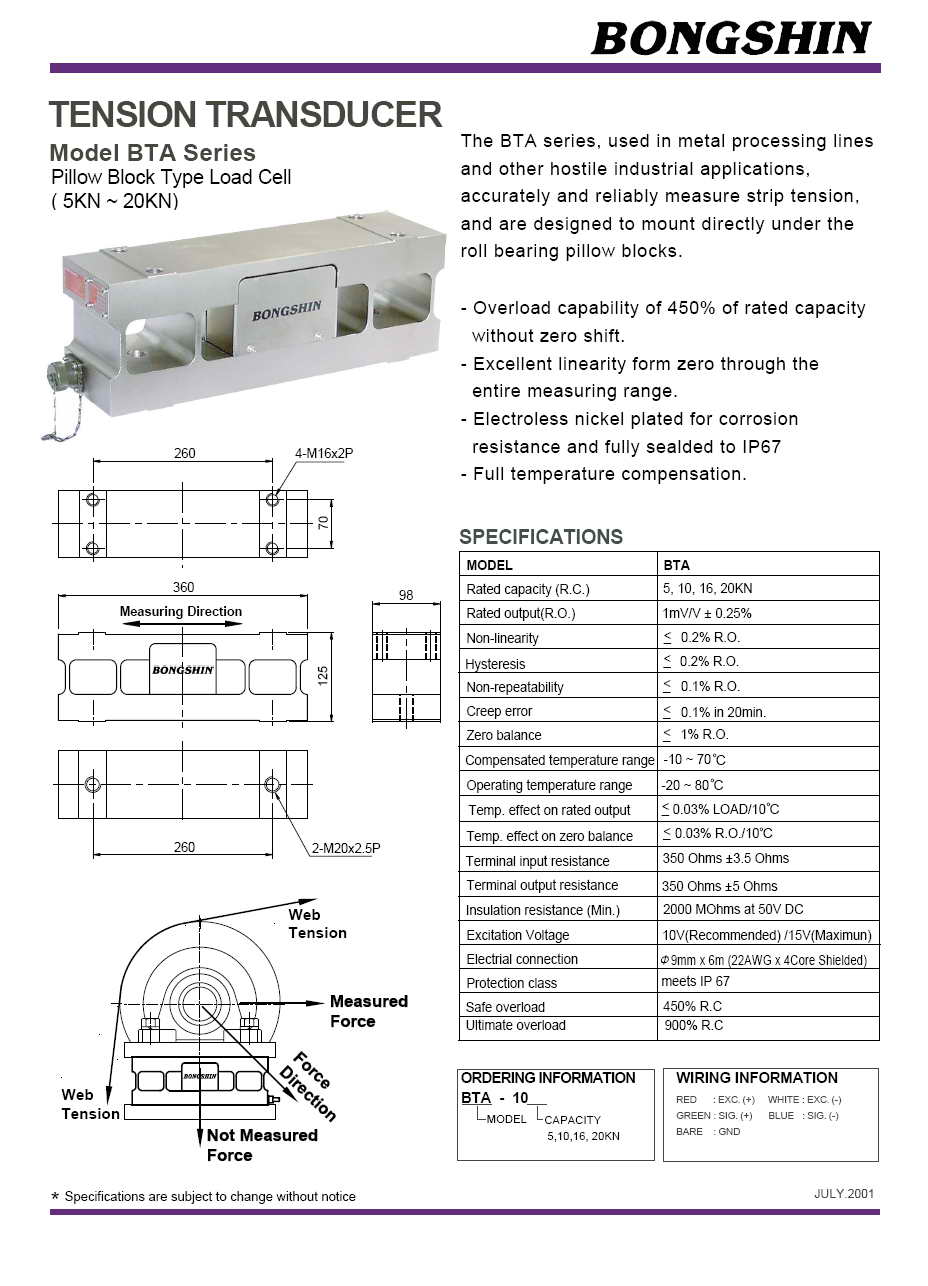 | 產(chǎn)品名稱:BTA 拉式稱重傳感器(tension transducer) |