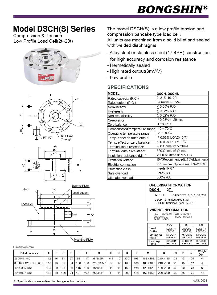 DSCH(S) 拉壓稱重傳感器(load cell)