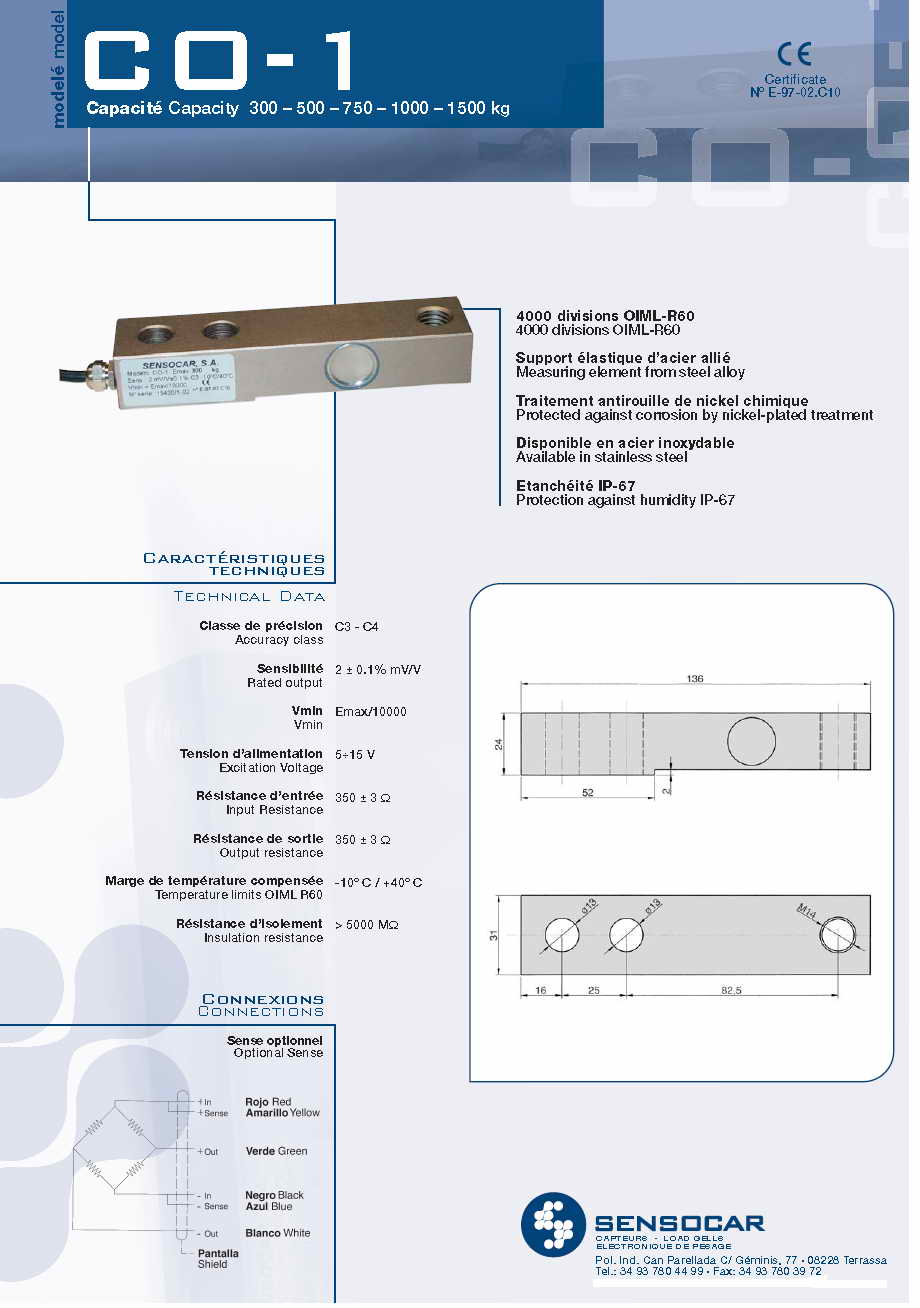 Sensocar CO-1 梁式稱(chēng)重傳感器(load cells)
