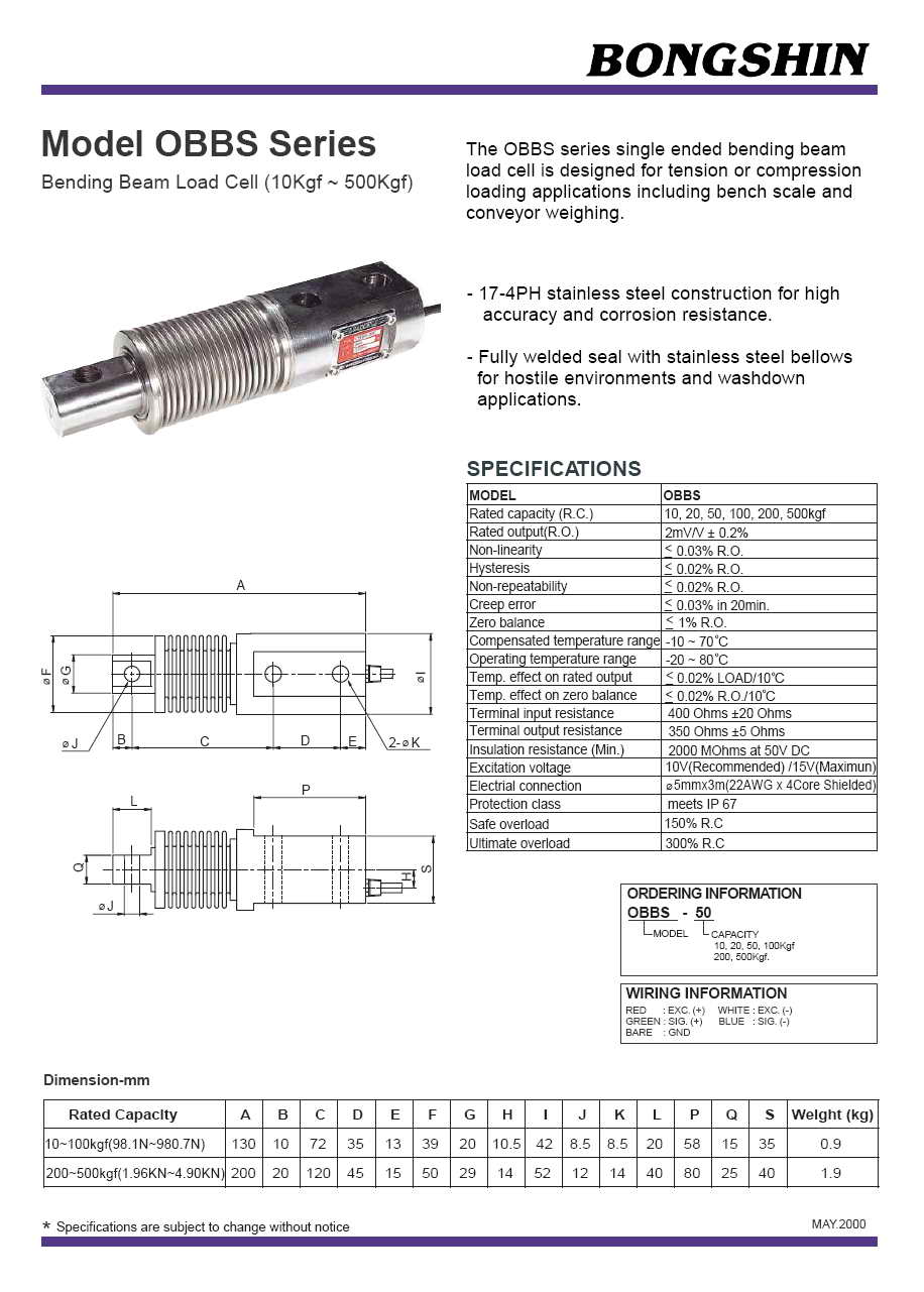 | 產(chǎn)品名稱(chēng):OBBS 波紋管稱(chēng)重傳感器(load cell) |