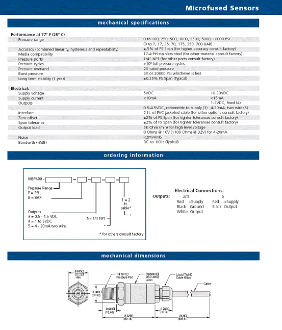 MSI MSP-400 壓力傳感器 (pressure transducer)