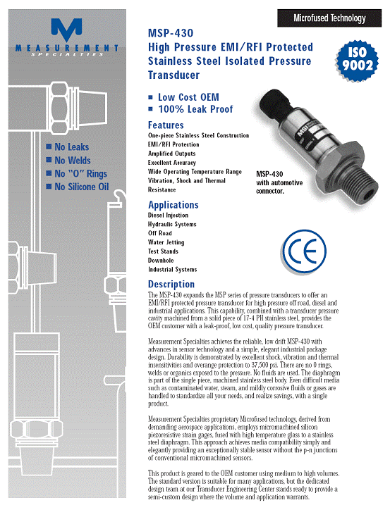| 產(chǎn)品名稱:MSP-430 壓力傳感器 (pressure transducer) |