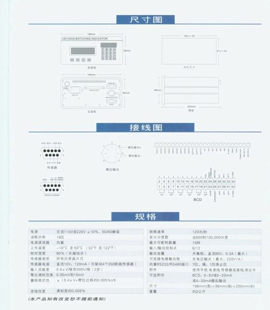 | 產(chǎn)品名稱:CB1000S 配料控制器(indicator) |
