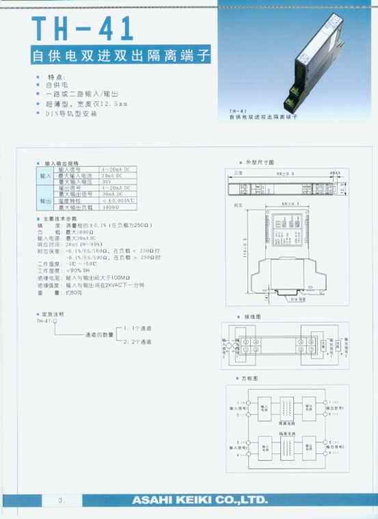 TH-41 自供電雙進雙出隔離端子(transmitter)
