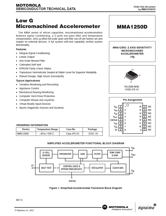 | 產(chǎn)品名稱:MMA1250D 加速度傳感器(Accelerometer) |
