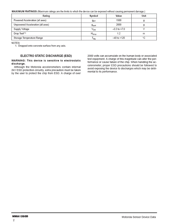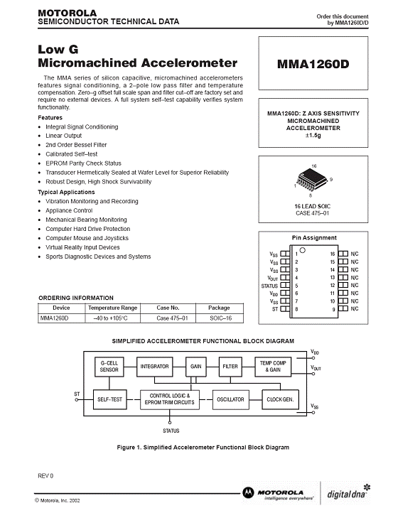 MMA1260D 加速度傳感器(accelerometer)