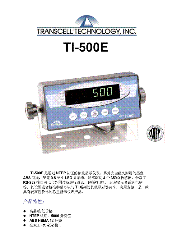 | 產(chǎn)品名稱:Transcell T1-500E-SS 耐用稱重顯示儀表(Indicator) |