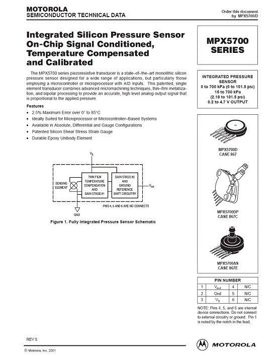 | 產(chǎn)品名稱:MPX5700 氣壓傳感器(sensor) |