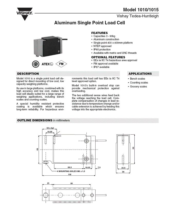 | 產(chǎn)品類型:美國Tedea-Huntleigh稱重傳感器 |